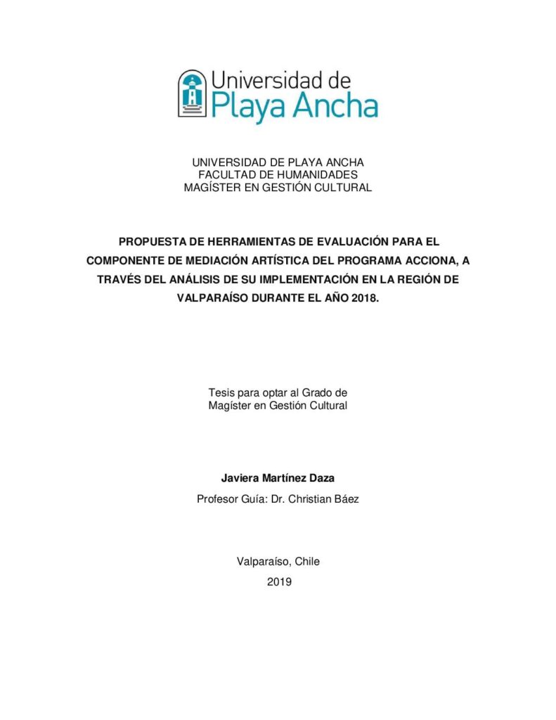 Propuesta de herramientas de evaluación para el componente de mediación artística del programa Acciona, a través del análisis de su implementación en la región de Valparaíso durante el año 2018 obragruesaadm / 27 mayo, 2021