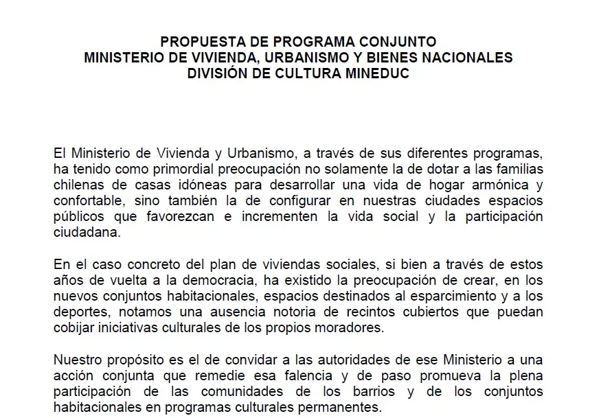 Propuesta de programa en conjunto MINVU, Bienes Nacionales y División de Cultura (MINEDUC) Christian Baez / 21 febrero, 2025