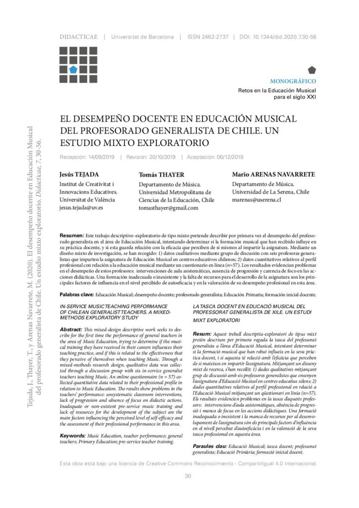 El desmpeño docente en Educación Musical del profesorado generalista de Chile. Un extudio mixto exploratorio. obragruesaadm / 12 marzo, 2020