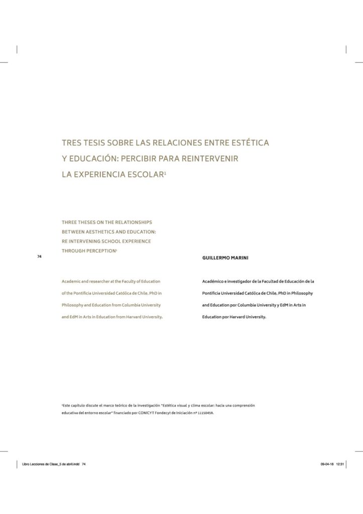 Tres tesis sobre las relaciones entre estética y educación: percibir para reintervenir la experiencia escolar obragruesaadm / 12 marzo, 2020