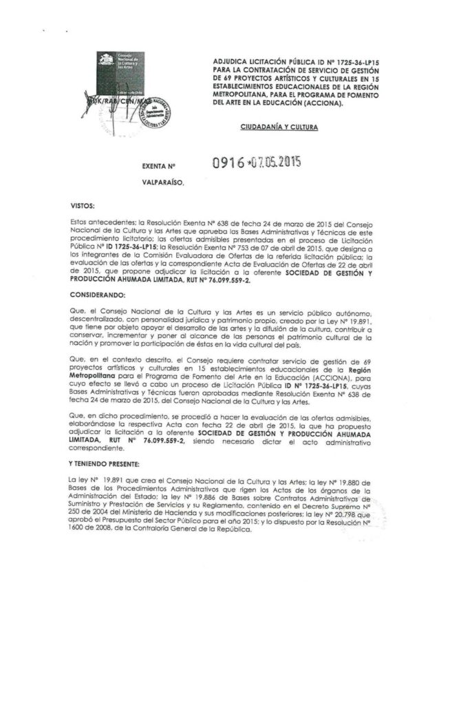 Acciona. Rex n°1137 Aprueba contrato. Región Metropolitana