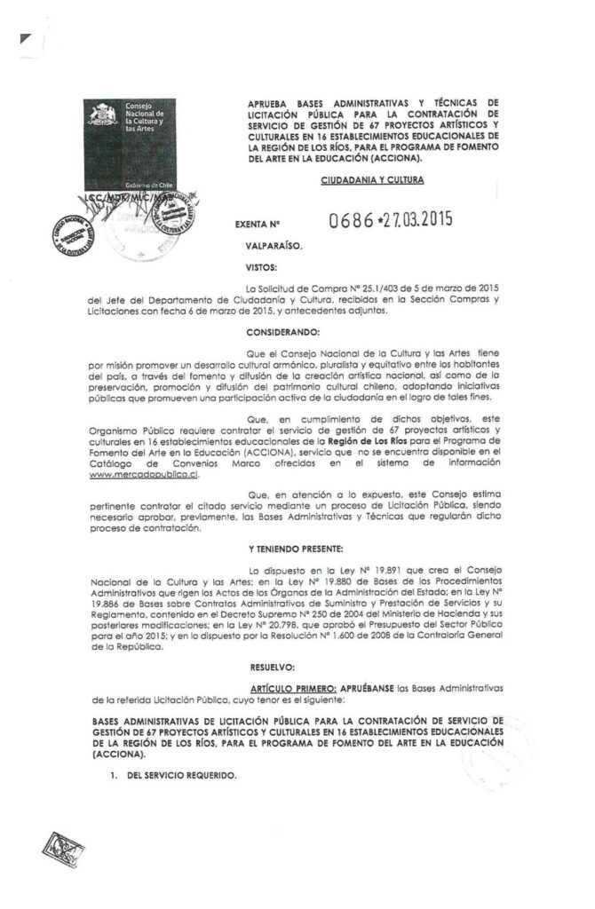 Acciona. Aprueba Bases Licitación 1725. Región de Los Ríos