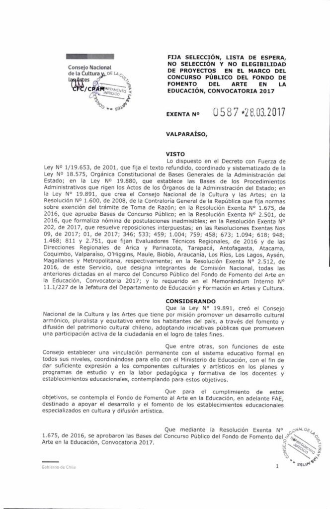 FAE. Rex 587 fija selección de proyectos
