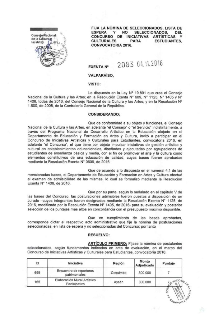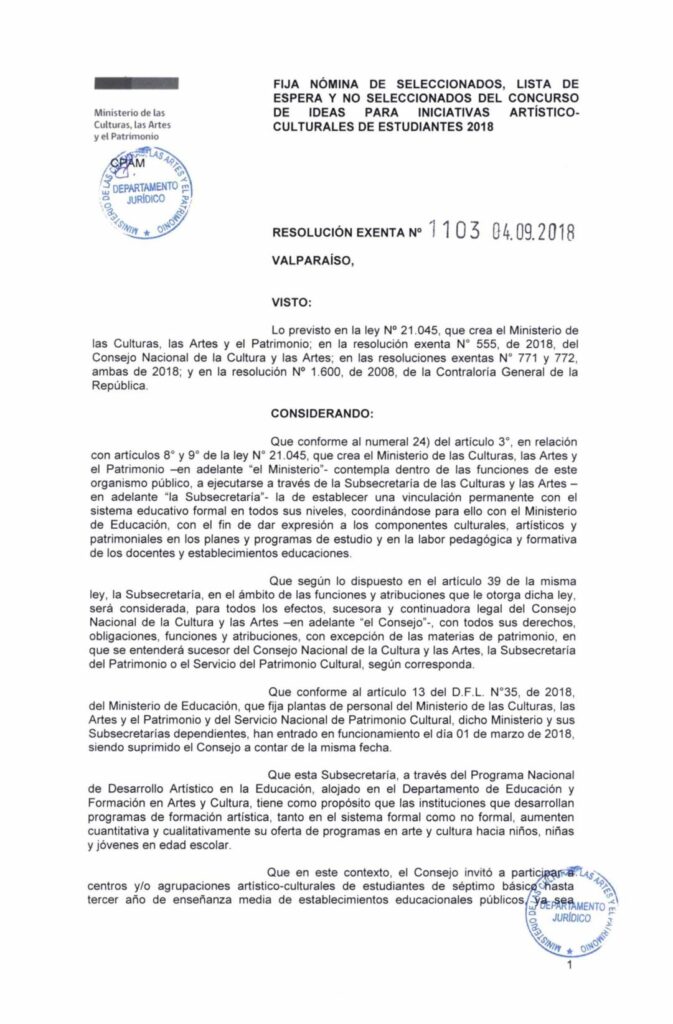 IACE, Rex 1103 seleccionados, lista de espera y no seleccionados.