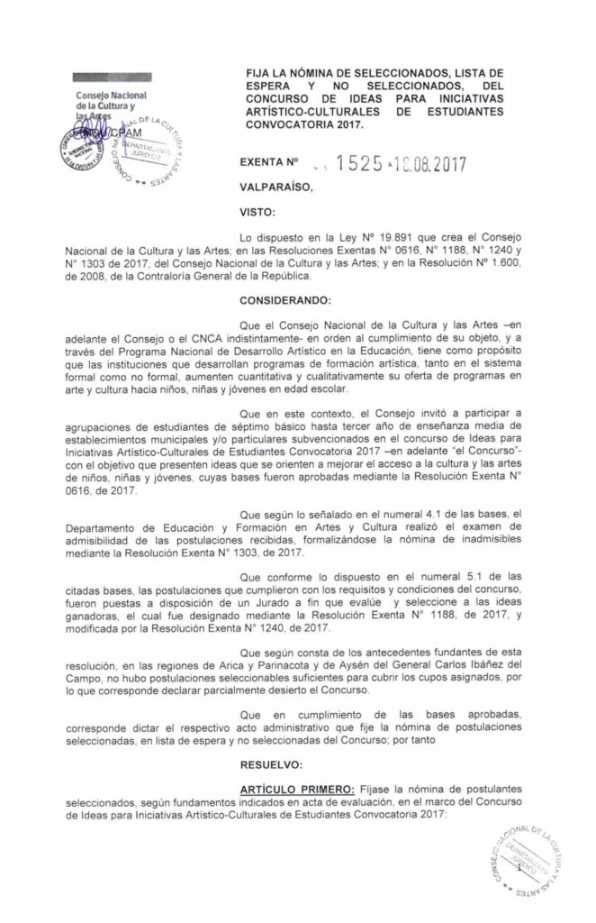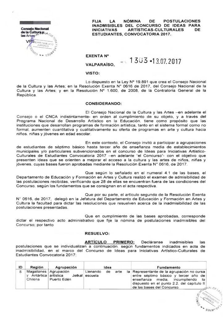 IACE, Rex 1303 Fija la nómina inadmisibles