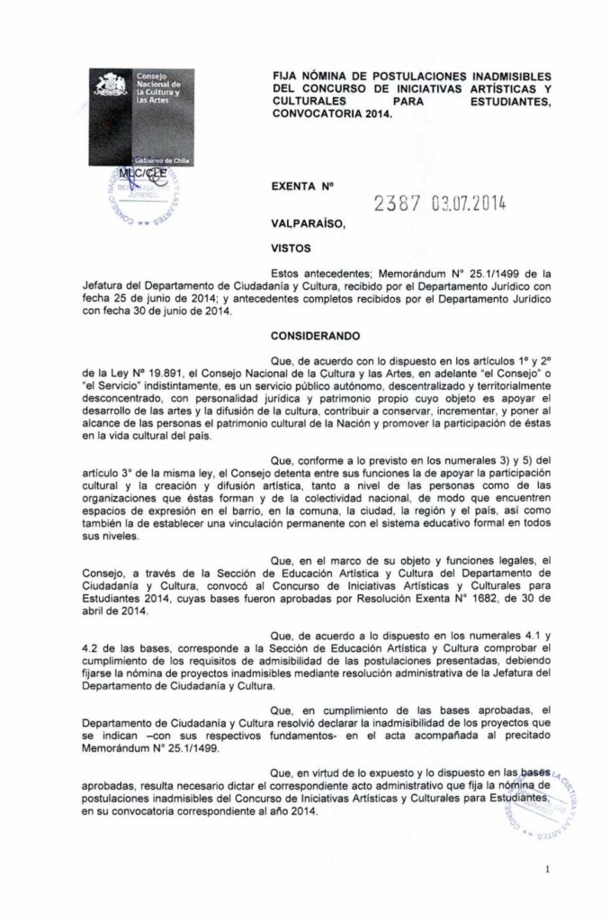IACE, 3247 Fija selección y no selección de proyectos postulados al concurso obragruesaadm / 4 marzo, 2019