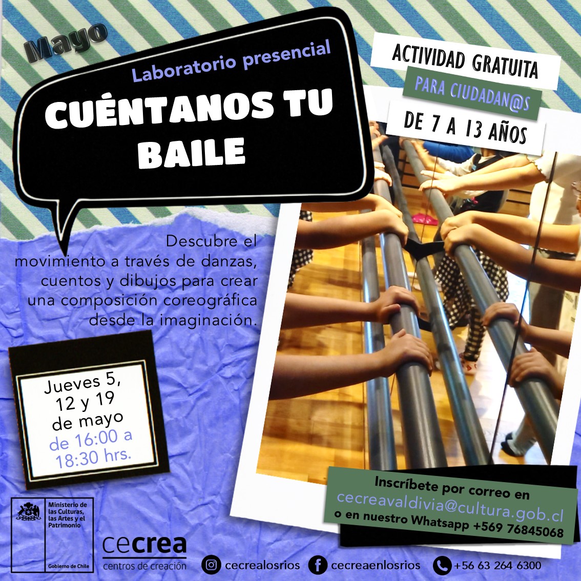 Título: Laboratorio Cuéntanos tu baile (Material comunicacional). Descripción: Material comunicacional creado para la difusión del Laboratorio Cuéntanos tu baile.