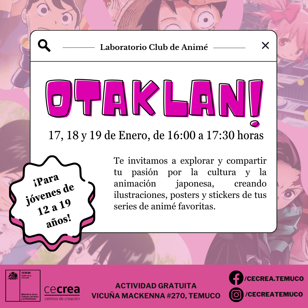 Título: OTAKLAN Laboratorio de creación de posters de anime (Material comunicacional). Descripción: Material comunicacional creado para la difusión del Laboratorio OTAKLAN Laboratorio de creación de posters de anime.