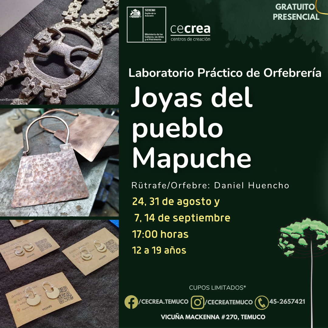 Título: Laboratorio de Artesanía, joyas del Pueblo Mapuche (Material comunicacional). Descripción: Material comunicacional creado para la difusión del Laboratorio de Artesanía, joyas del Pueblo Mapuche.