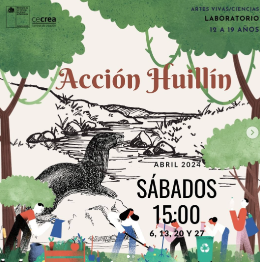 Título: Acción Huillín (Planificación). Descripción: Desde la problemática del Agua en Chiloé utilizando la especie paraguas Lontra provocax: Huillín, y que a través de su investigación e inspiración con el uso de métodos de ciencia en terrenos: análisis de huellas, y reconocimiento de hábitat, se proponga la observación de problemáticas en torno a la conservación de las cuencas de Chiloé y el derecho de NNJ....