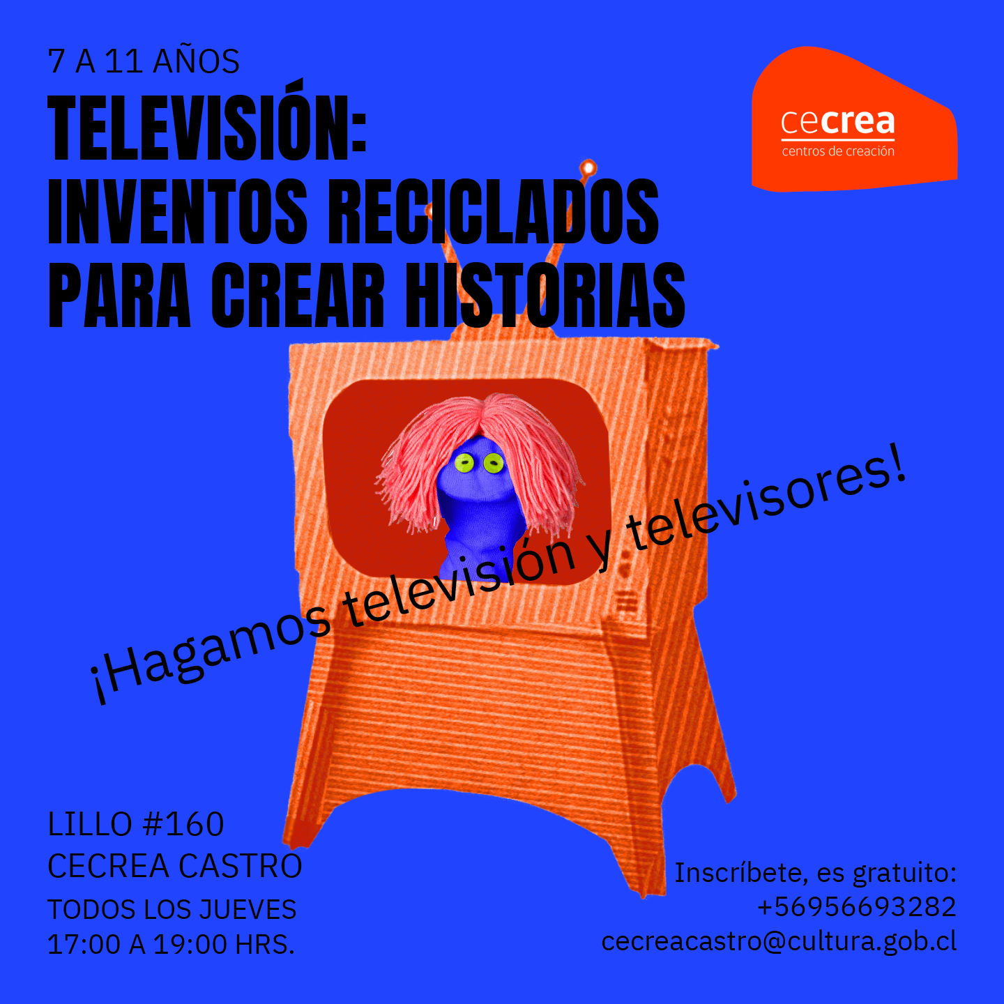 Título: Televisión – Inventos Reciclados para Crear Historias (Material comunicacional). Descripción: Imagen creada para la difusión del laboratorio Televisión – Inventos Reciclados para Crear Historias durante el mes de abril del 2022.