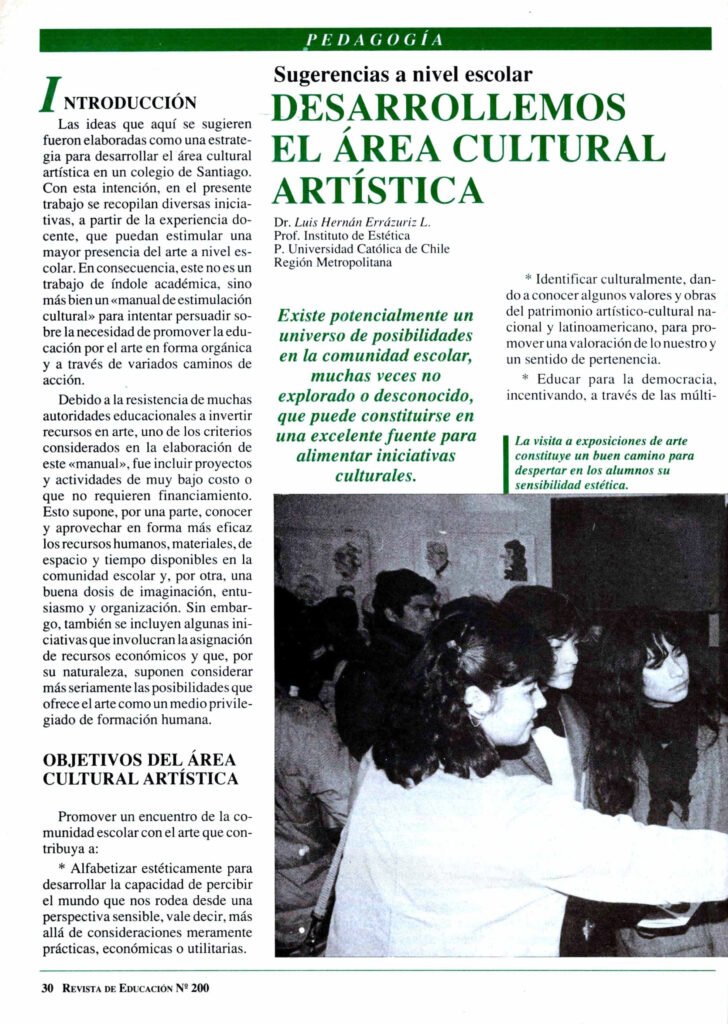 Sugerencias a nivel escolar. Desarrollemos el área cultural artística