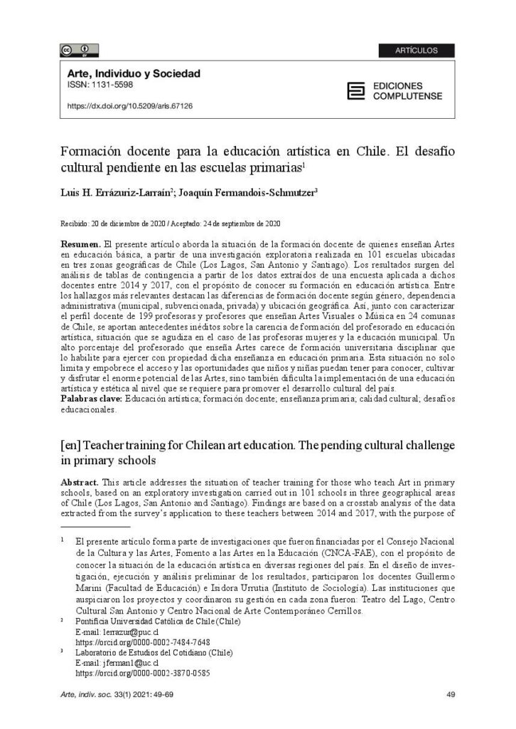 Formación docente para la educación artística en Chile