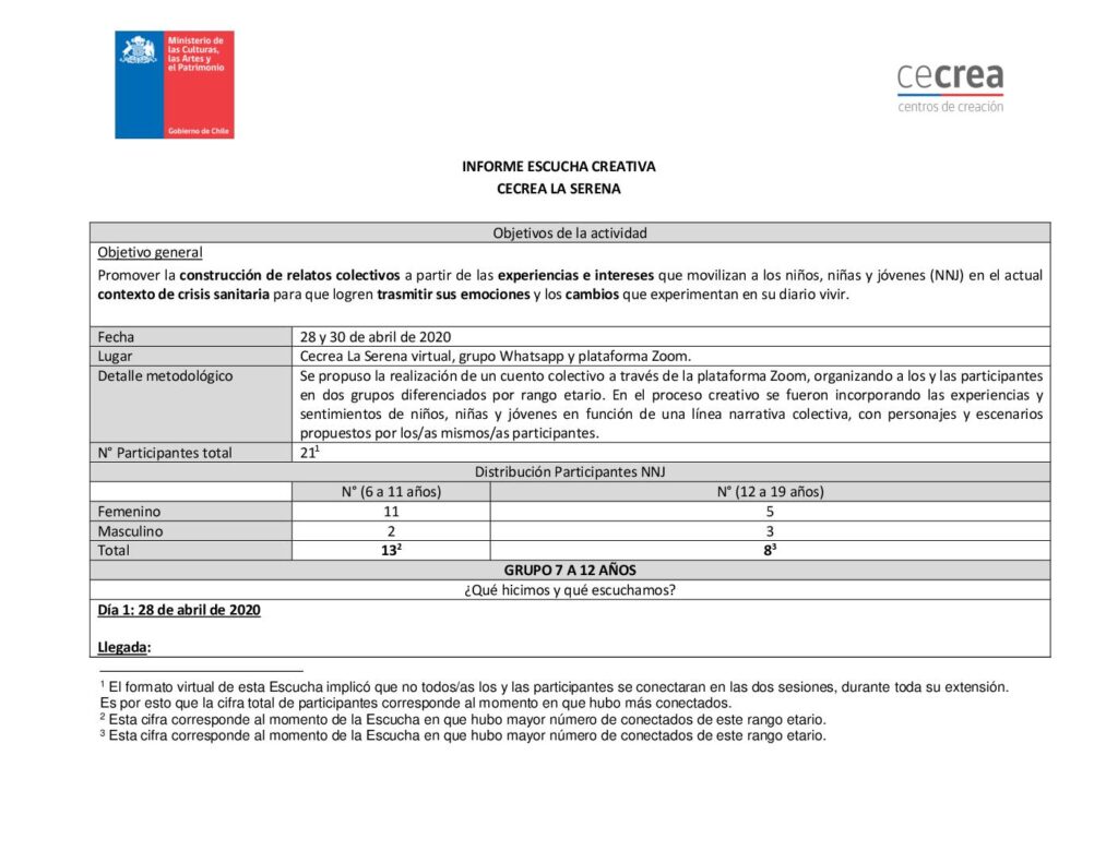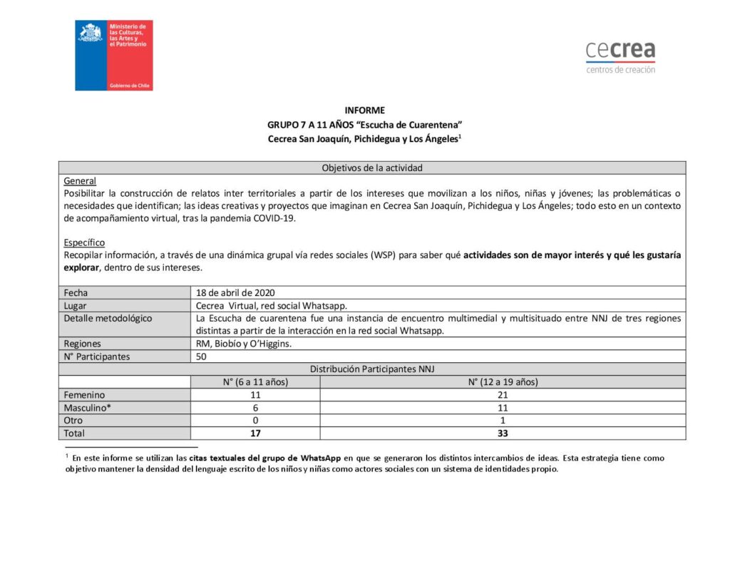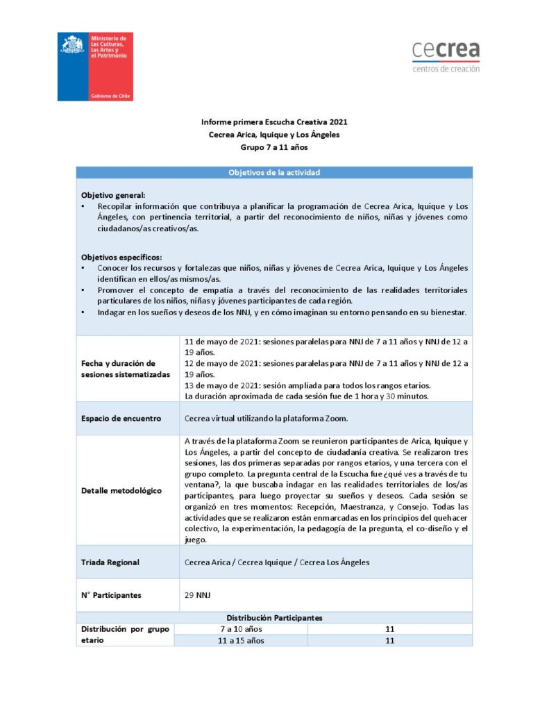 Cecrea. Informe primera Escucha Creativa. Arica, Iquique y Los Ángeles Grupo 7 a 11 años obragruesaadm / 7 octubre, 2021