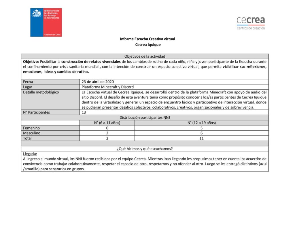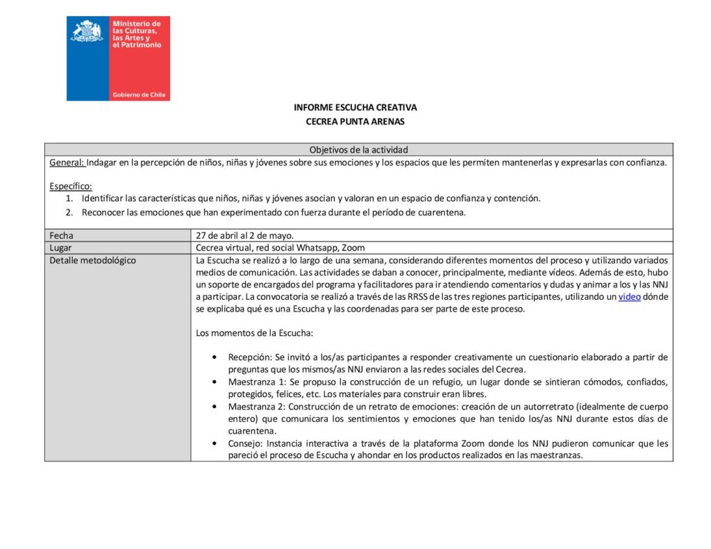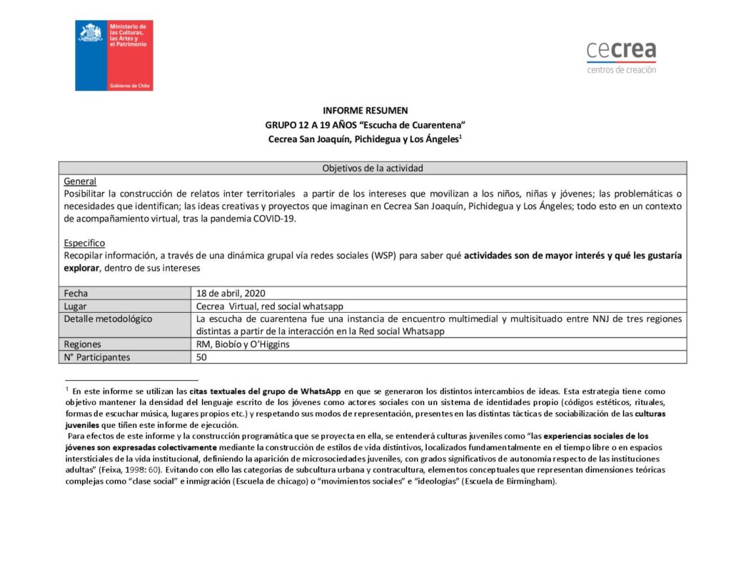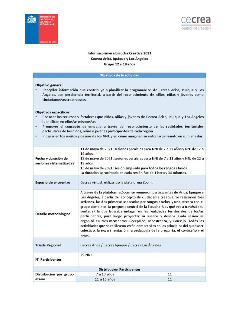 Cecrea. Informe primera Escucha Creativa. Arica, Iquique y Los Ángeles. Grupo 12 a 19 años obragruesaadm / 7 octubre, 2021