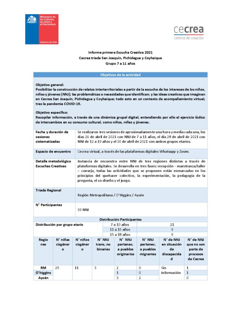 Cecrea, triada San Joaquín, Pichidegua y Coyhaique. Informe primera Escucha Creativa 2021, grupo de 7 a 11 años. obragruesaadm / 29 julio, 2021