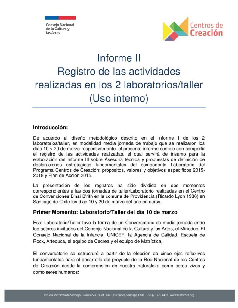 Cecrea. Informe II. Registro de las actividades realizadas en 2 laboratorios/taller obragruesaadm / 13 mayo, 2022