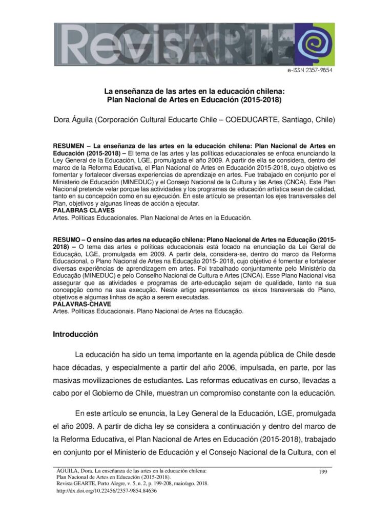 La enseñanza de las artes en la educación chilena: Plan Nacional de Artes en Educación (2015-2018) nancy.mansilla / 15 noviembre, 2024