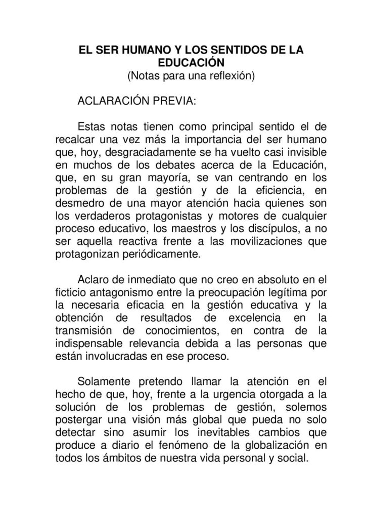 El ser humano y los sentidos de la educación