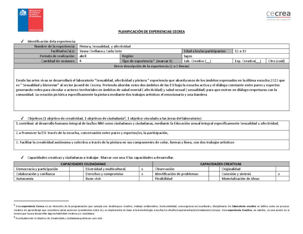 Pintura, Sexualidad, y afectividad (Planificación)