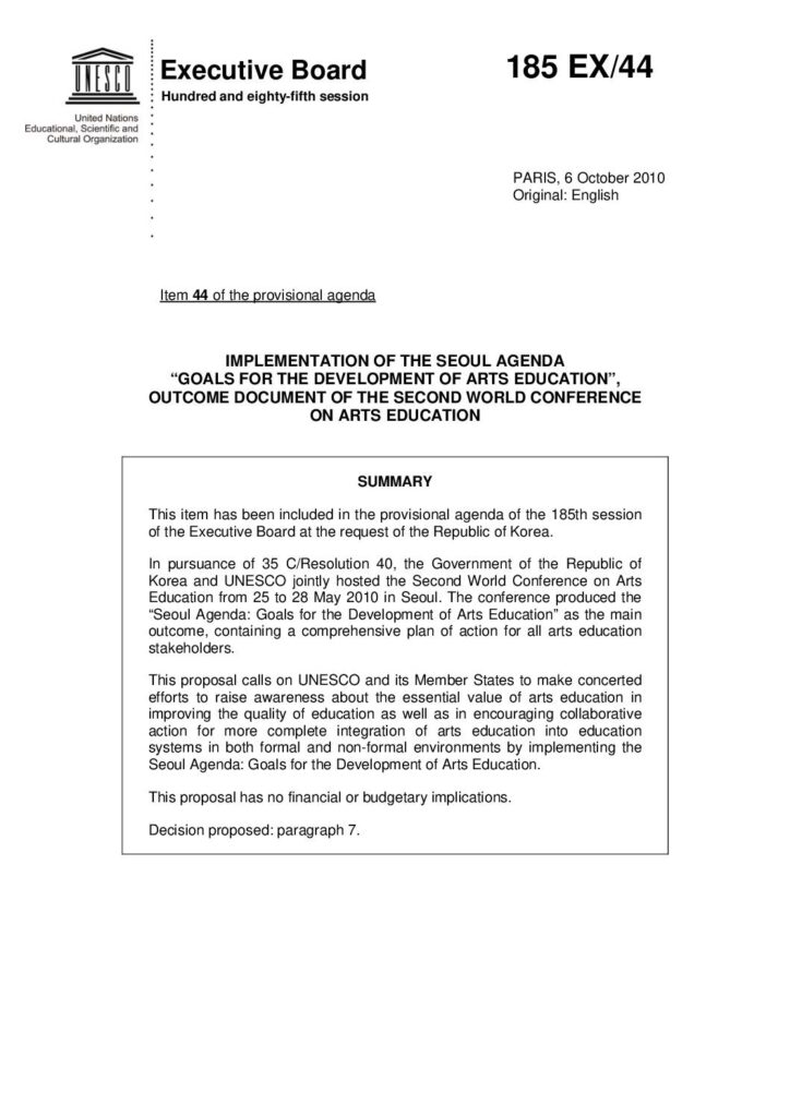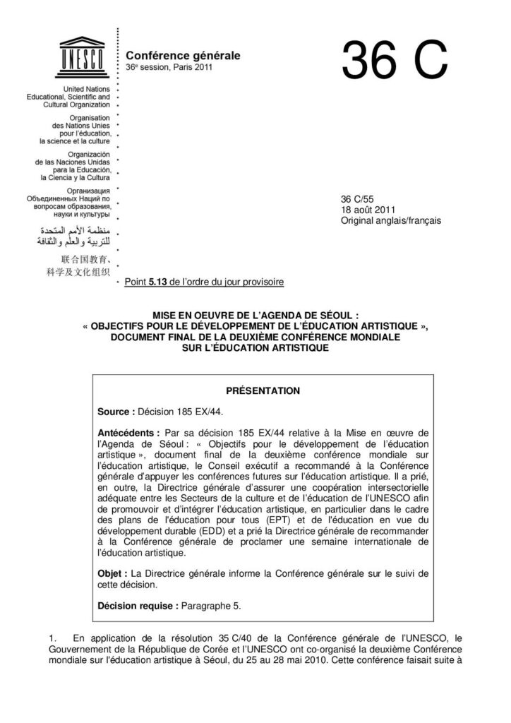 UNESCO. Implementation of the Seoul Agenda Goals for the Development of Arts Education obragruesaadm / 14 agosto, 2019