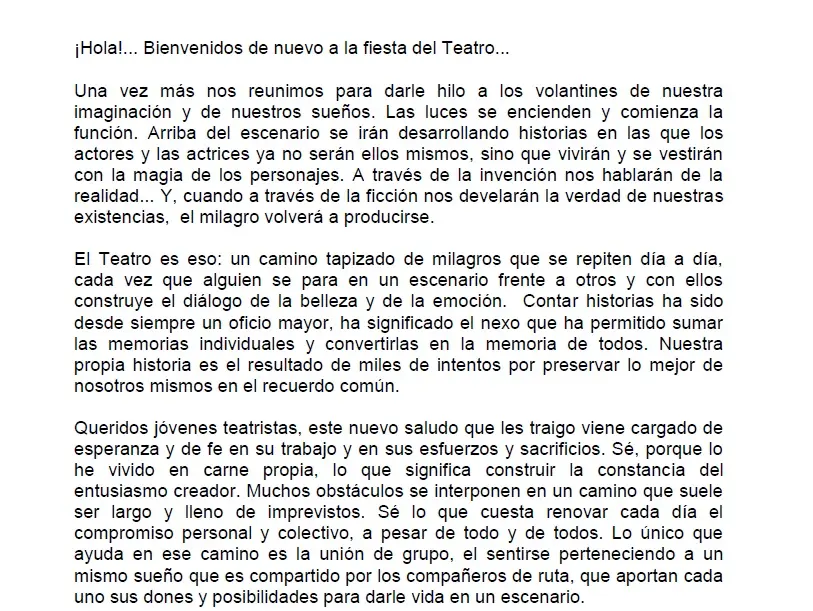 Saludo a festival de teatro escolar (1999)